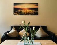 - Ferienwohnung - Lavendel - Wohn-Schlafzimmer (6 Bilder) großer Wohn-Schlafraum mit Doppelbett und Kleiderschrank.Panoramafenster , große Ledercouch .